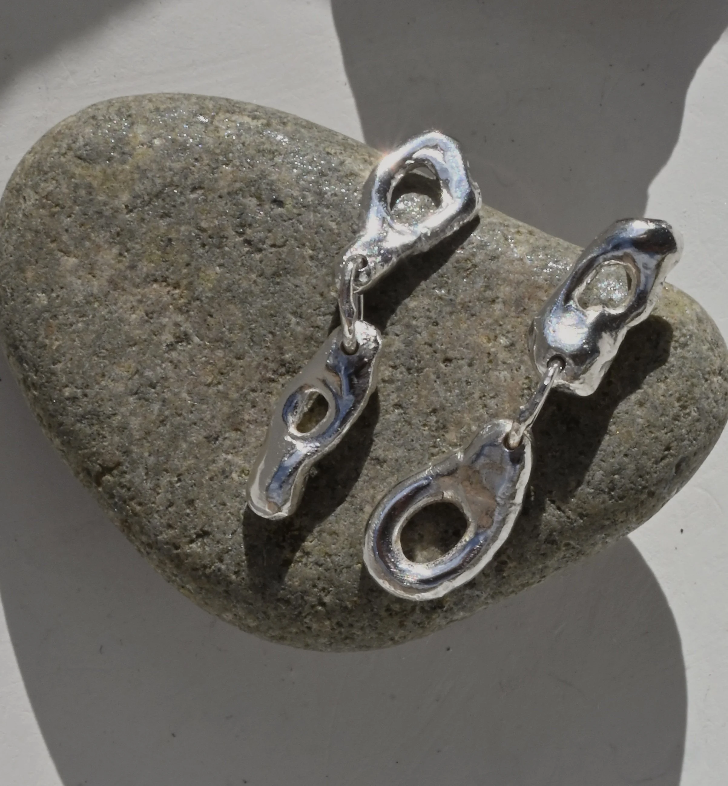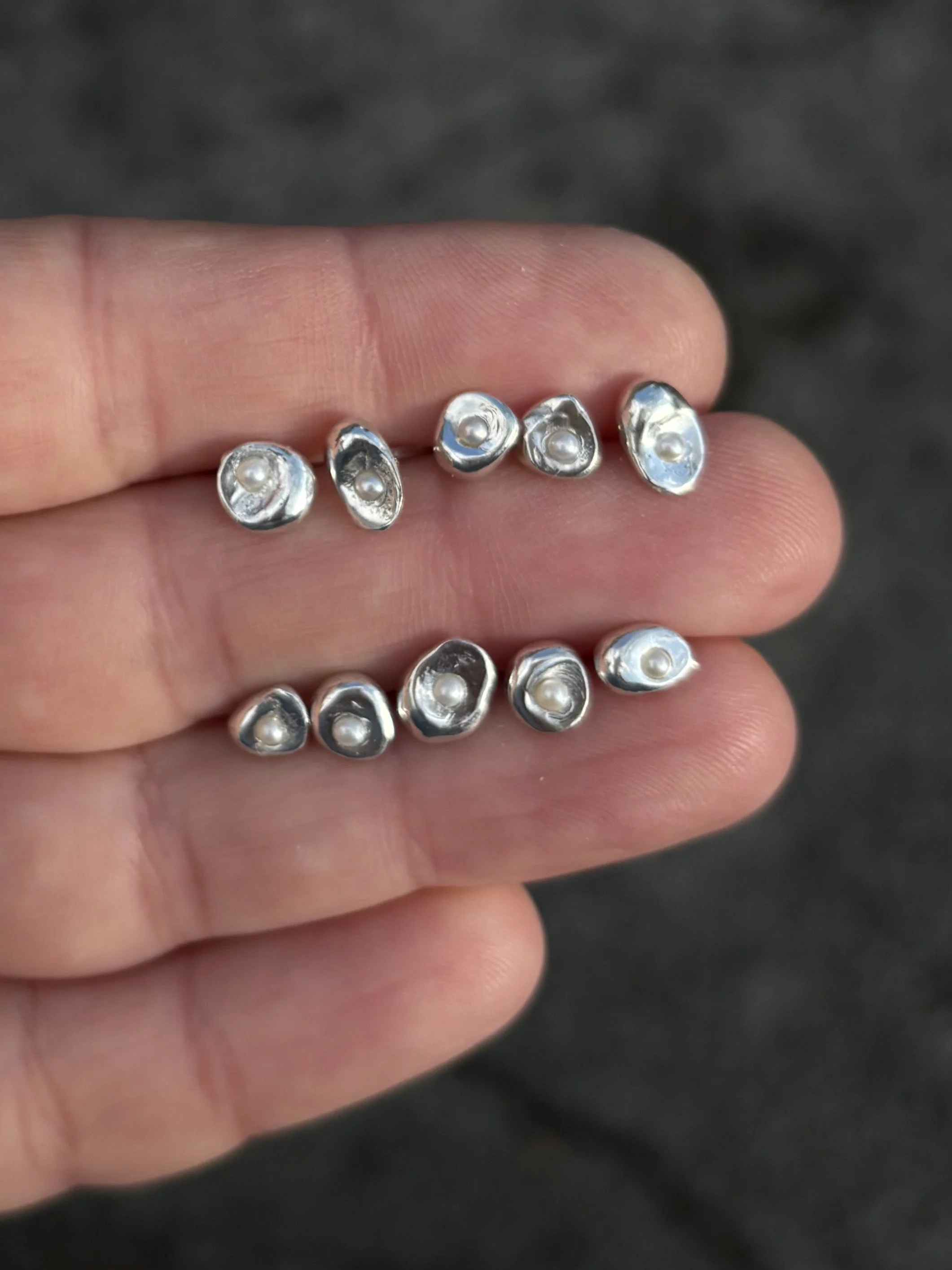 A crescendo of freshwater pearls and hand made silver cup beads. The reflection of the iridescent pearls against the sterling silver is luminous and eye catching. It breathes whimsy and elevates any outfit instantly.