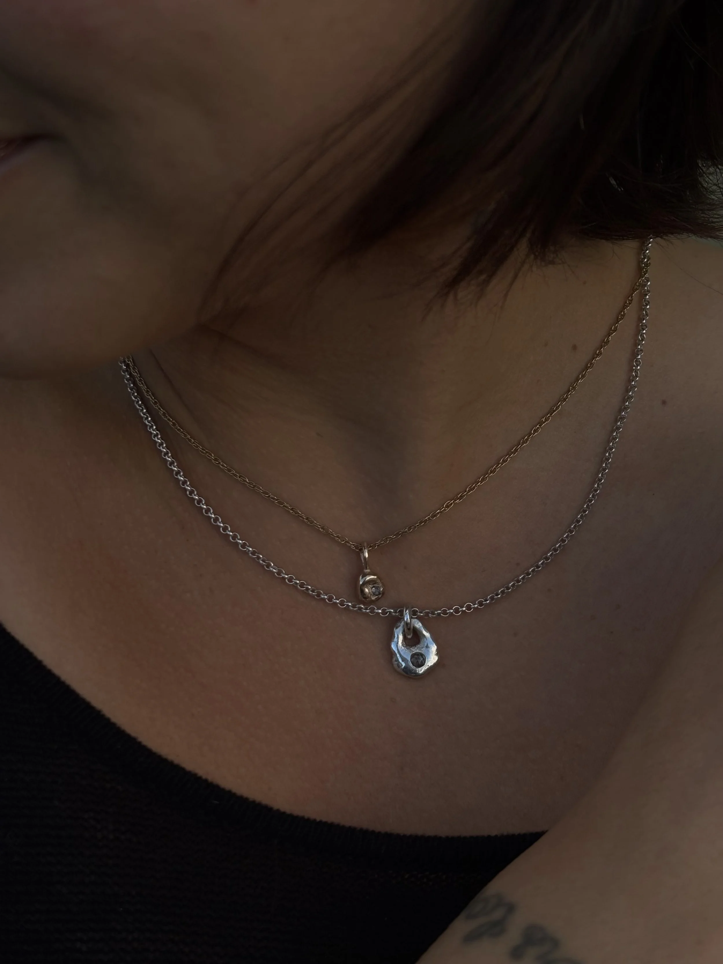 Hand knotted pearl necklace with coffee or lapis silk thread.