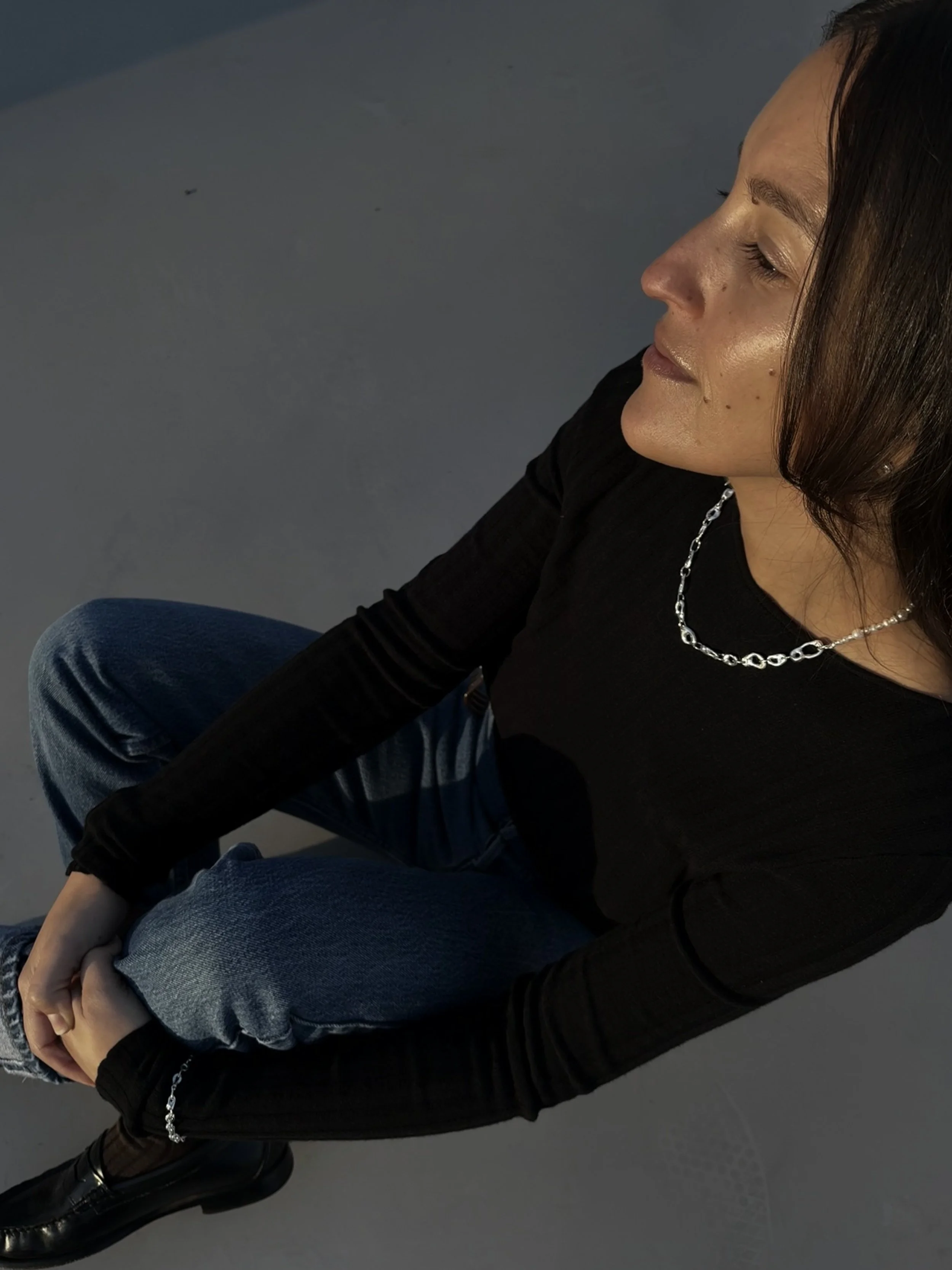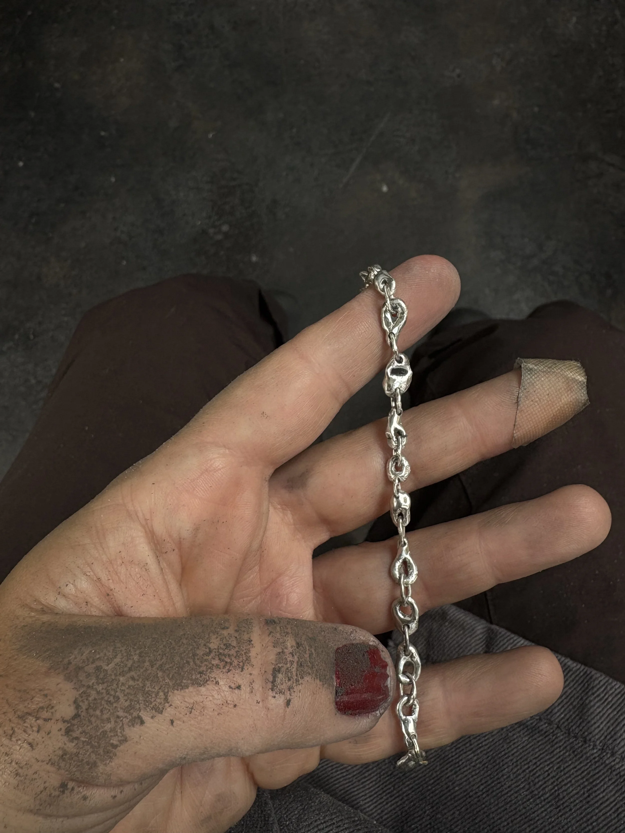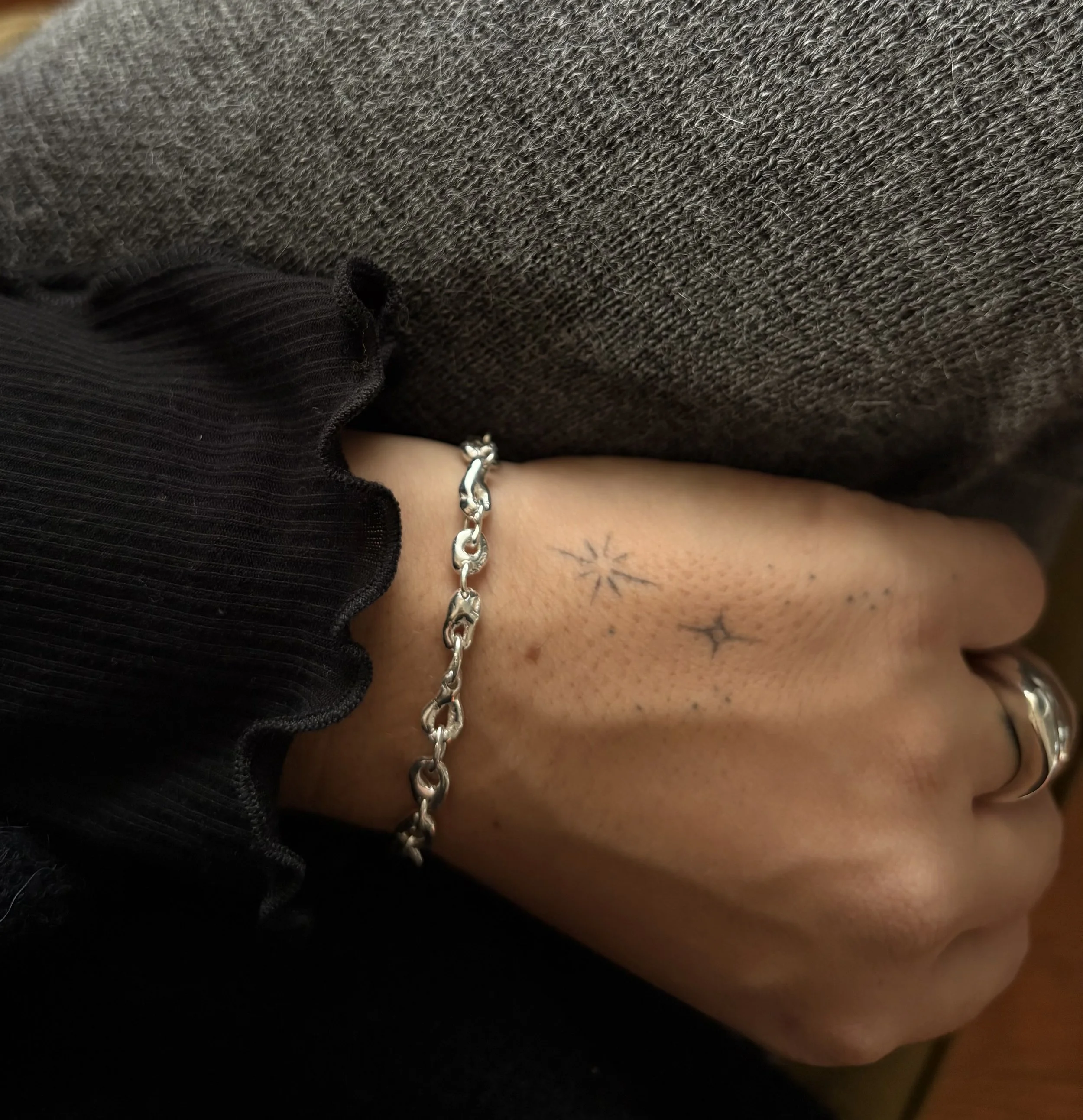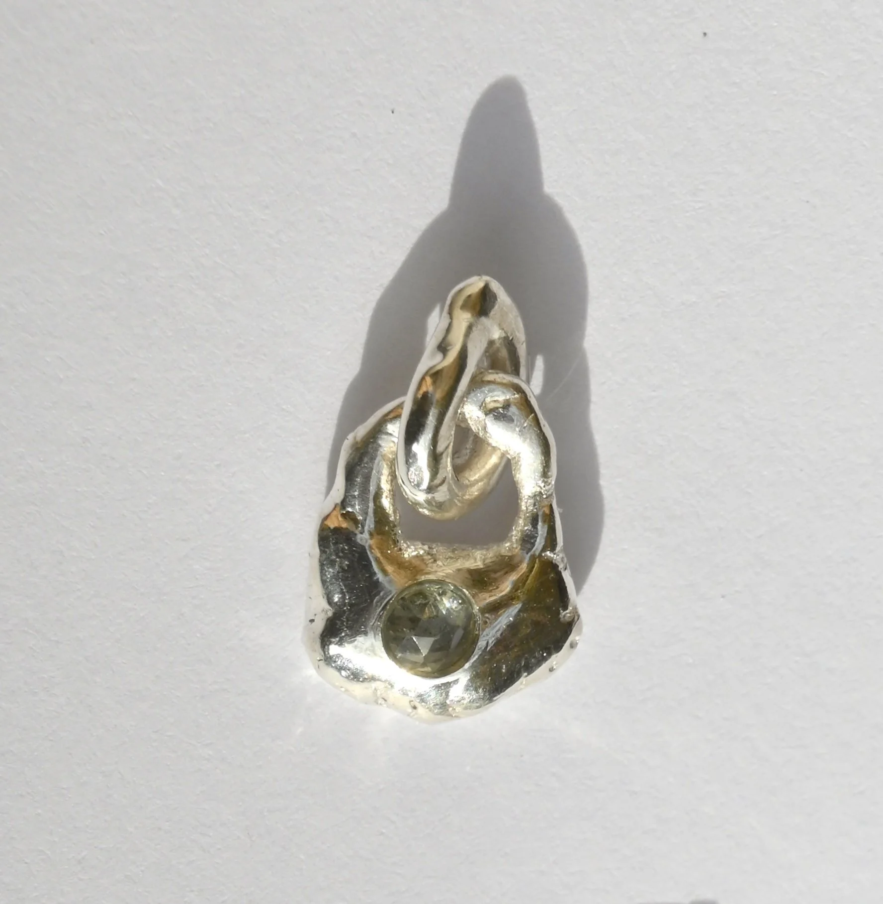 Melted 14k solid gold pebble studs with pressed salt and pepper 2mm diamonds.