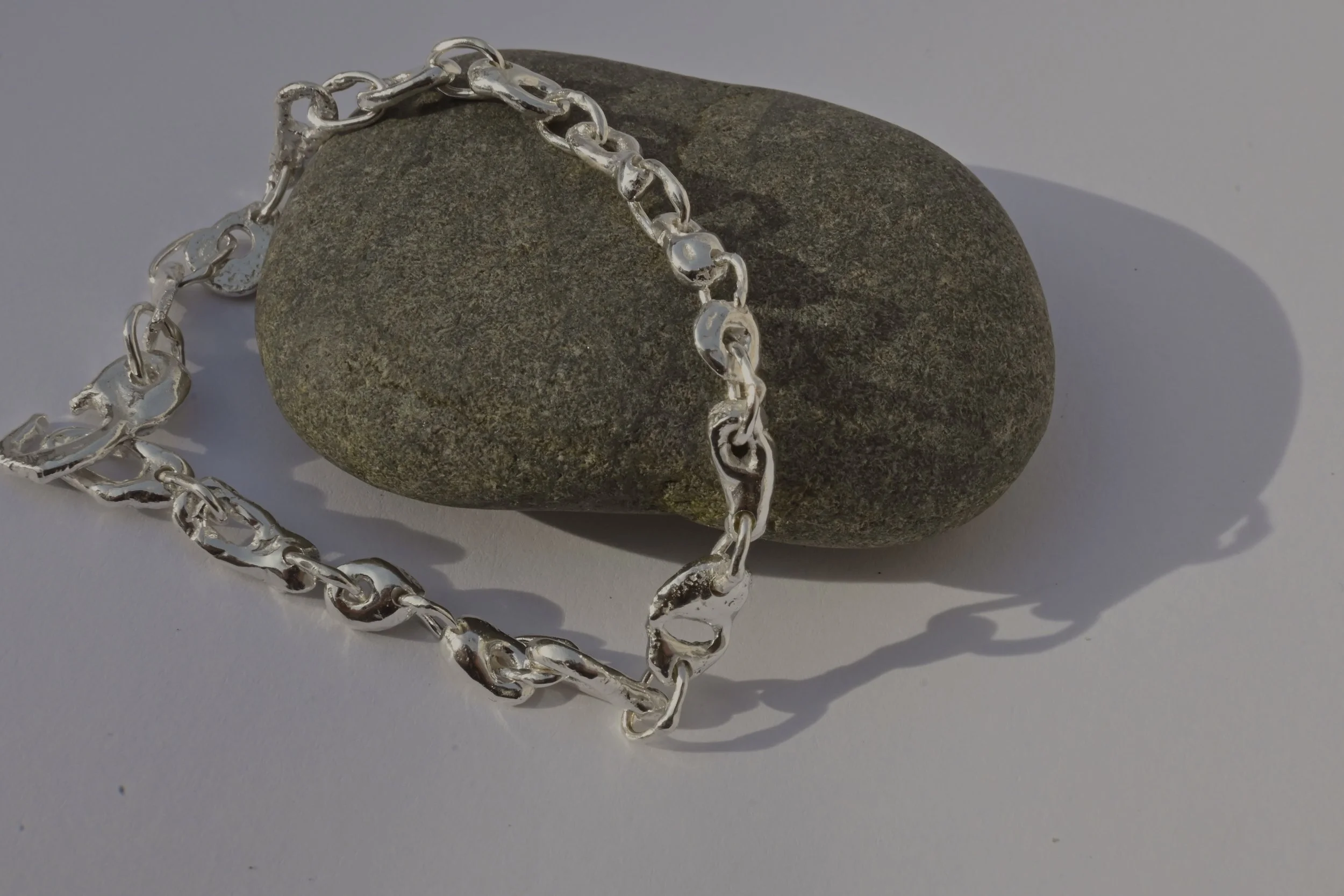 Each pebble is unique and one of a kind, as well as the diamonds. A mix of white, gray, and black.